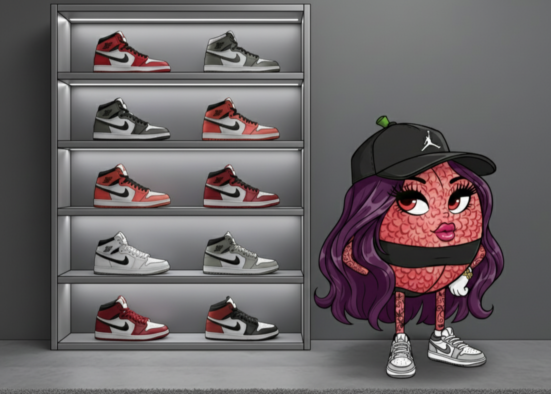 Holy Grail: Her Jordan sneakers (perhaps limited-edition Grey/Black) are a symbol of street success. While others collect Birkins, Leece collects the rarest drops, proving her status is measured by culture, not just money.